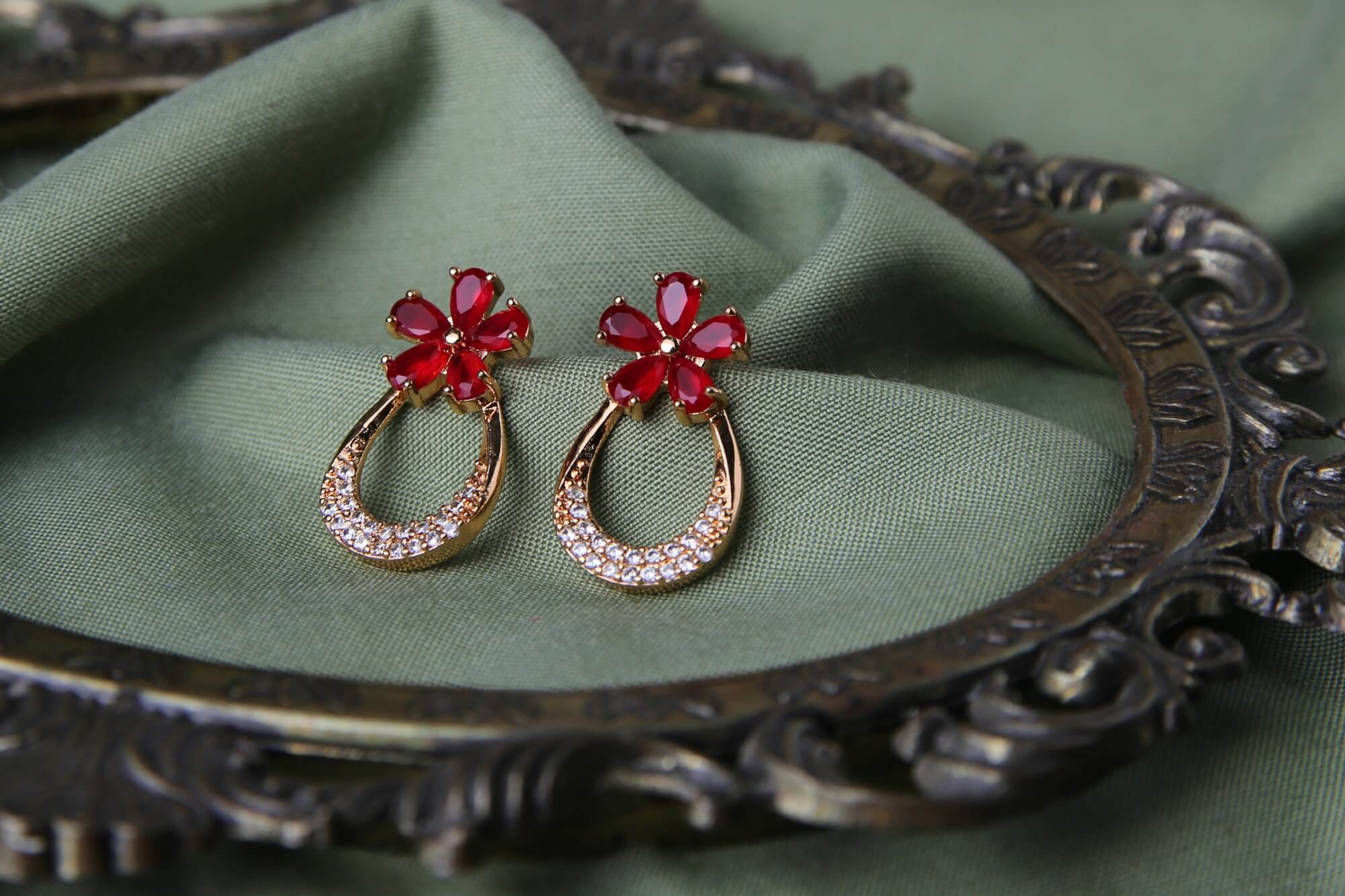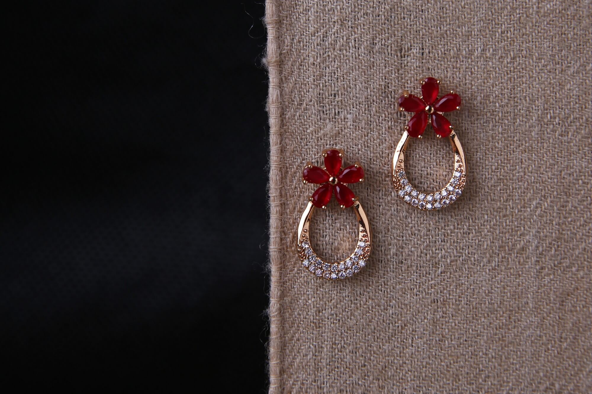 Ruby Flower Teardrop Earrings