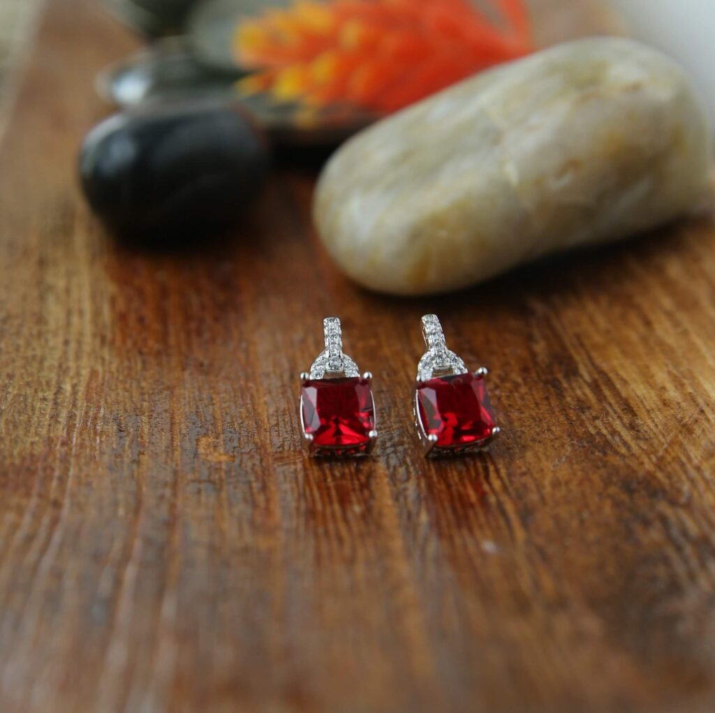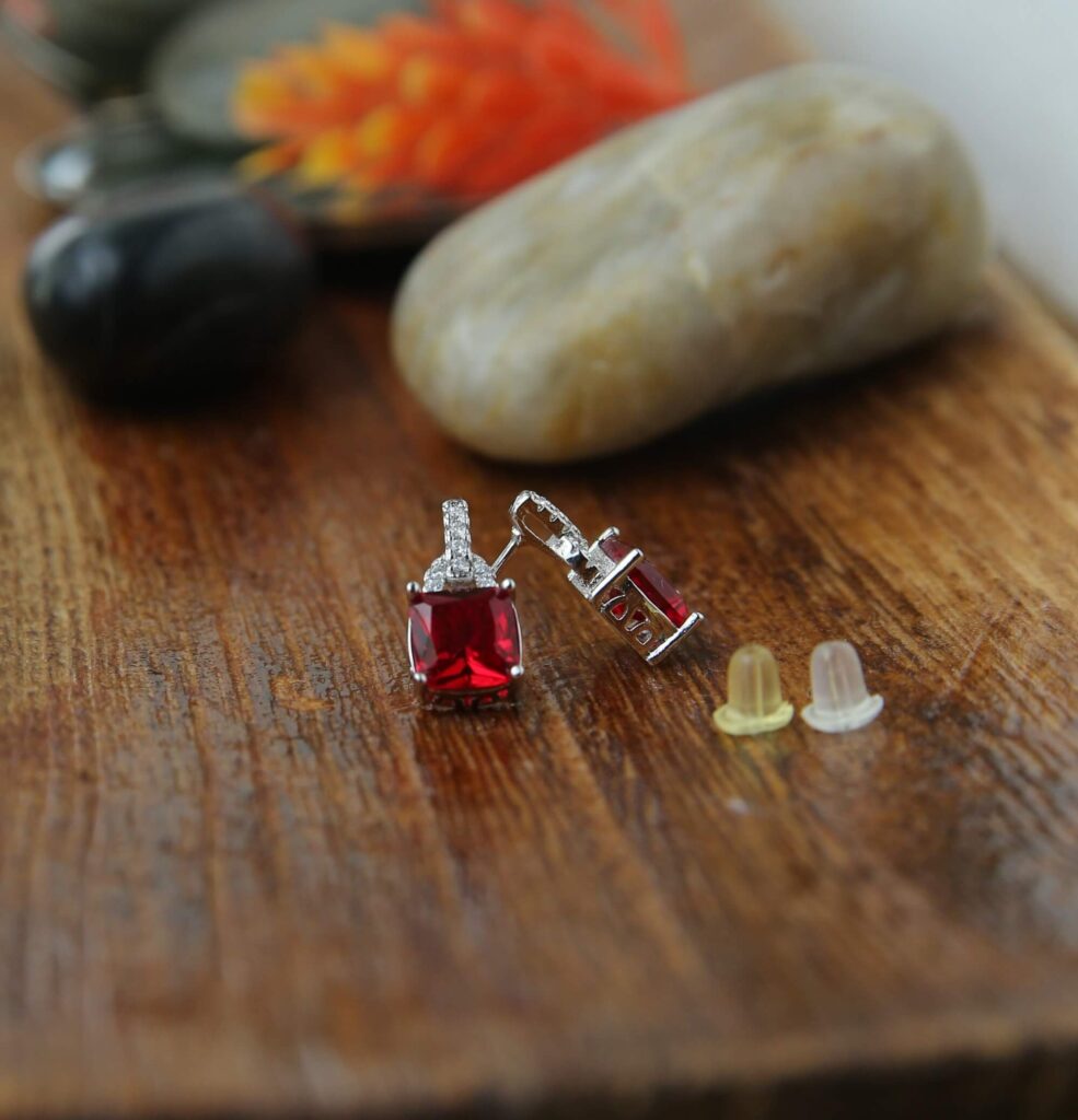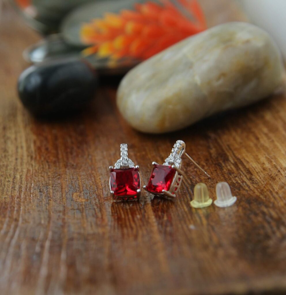 Make a statement with our Ruby Red Square Stud Earrings. These stunning earrings feature a dazzling ruby-red square gemstone, beautifully framed by sparkling crystal accents for added brilliance. Crafted with high-quality silver-tone settings, they exude sophistication and elegance, making them perfect for both special occasions and every day wear. The classic stud design ensures a secure fit and comfortable wear, while the striking color adds a vibrant touch to any outfit. Elevate your accessory game with these eye-catching earrings that embody luxury and style!