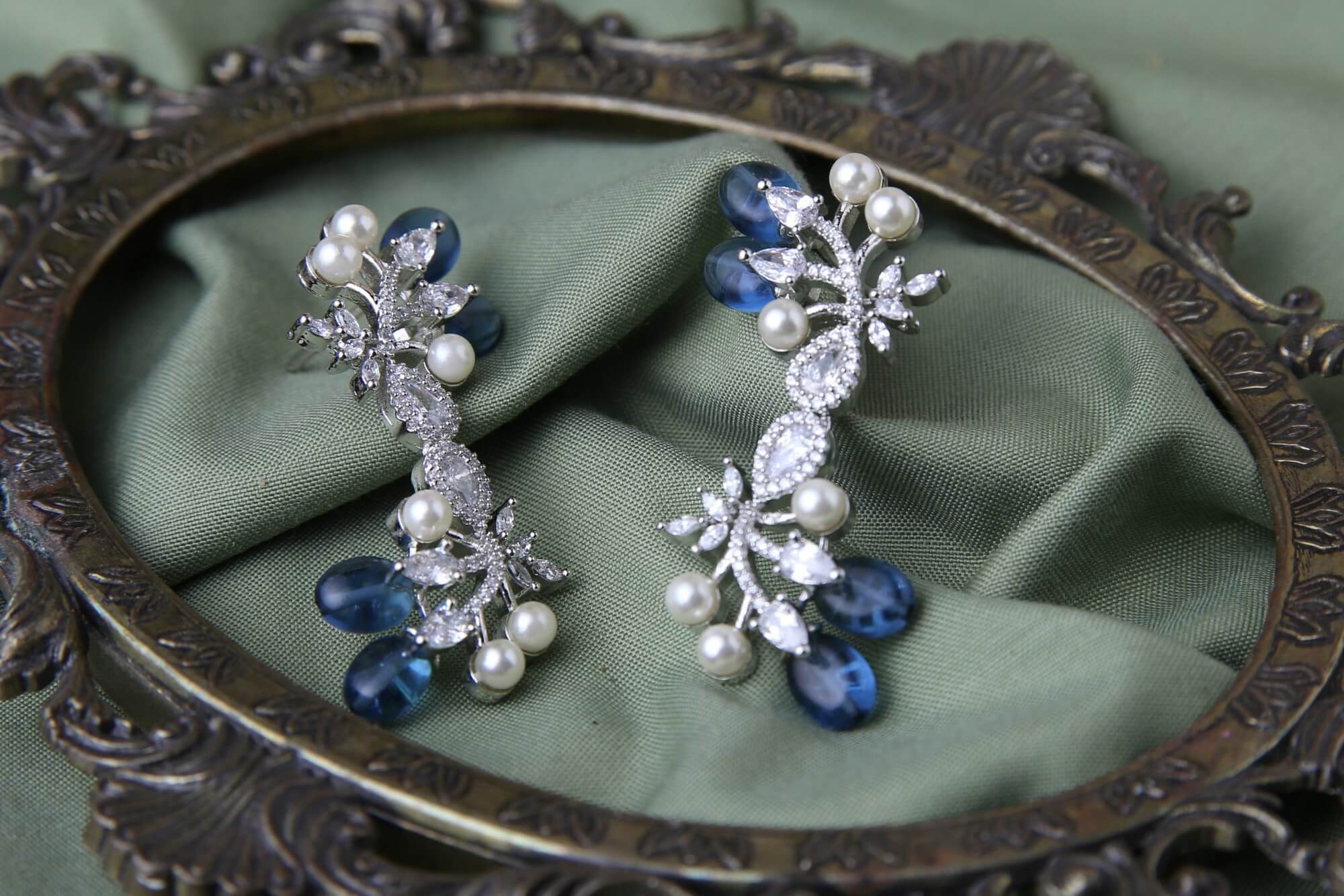 Sapphire Pearl Botanical Earrings