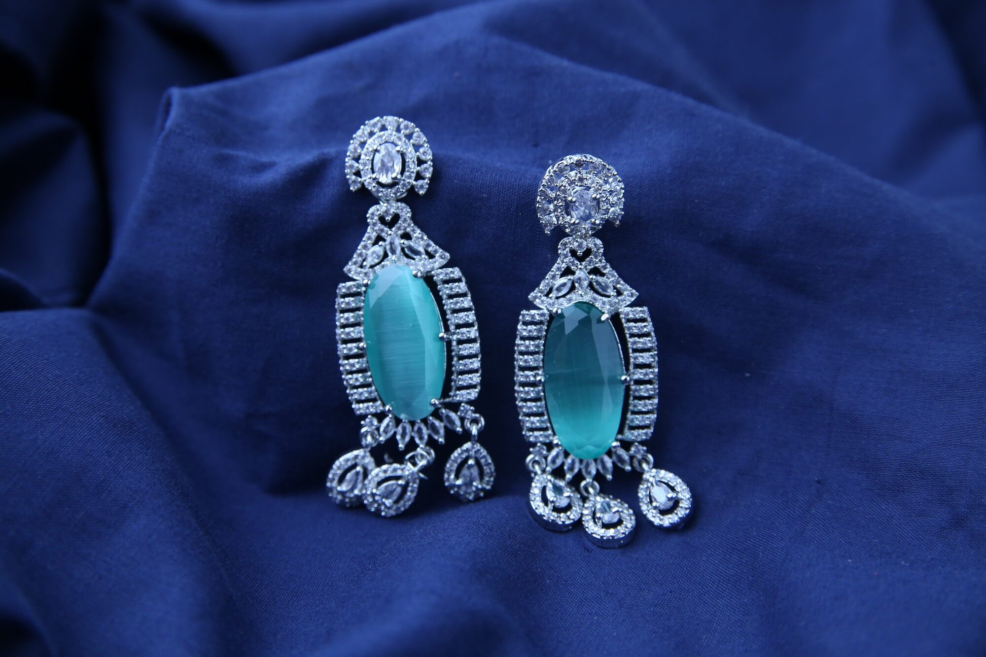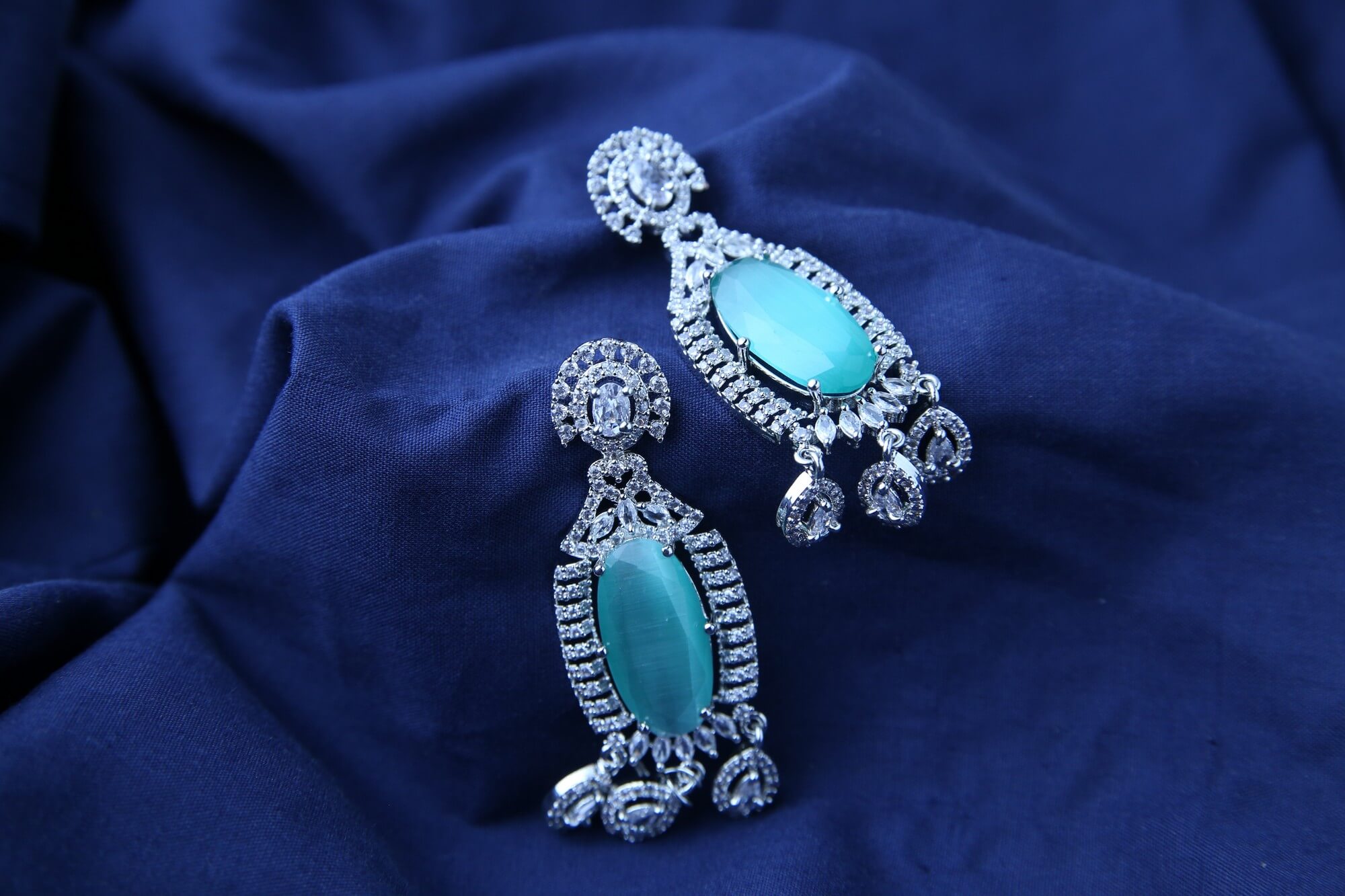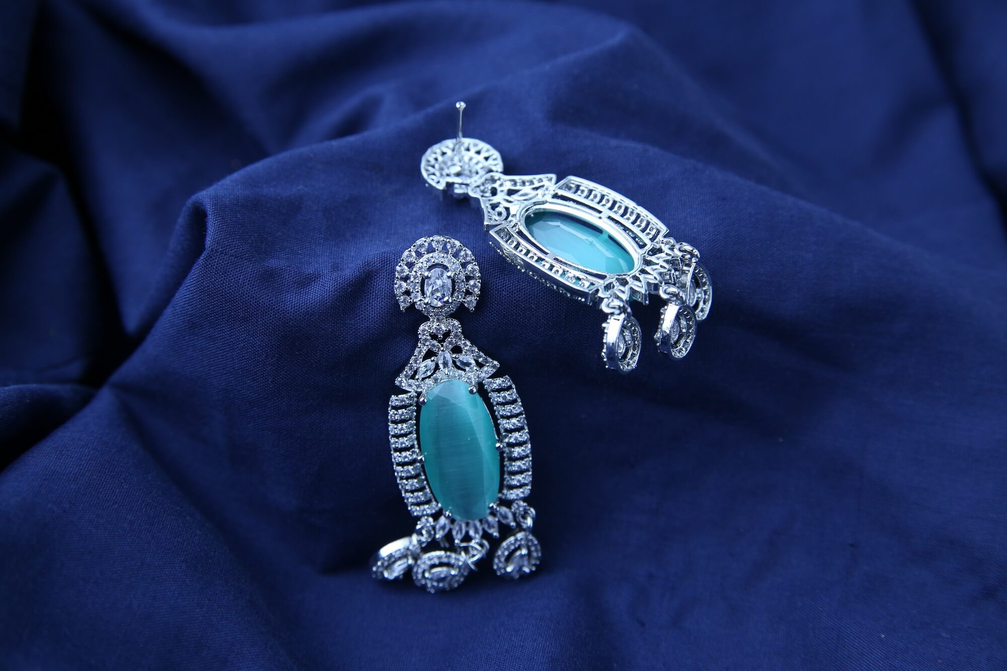 Embrace the tranquility of the ocean with these Seafoam Serenity Earrings. These elegant earrings feature a delicate tracery of sparkling clear crystals, framing a captivating, oval-shaped stone in a serene seafoam green hue. The soft, calming color evokes the tranquility of the ocean, adding a touch of peaceful sophistication to any look. The cascading design dangles gracefully, catching the light and adding a touch of movement. Perfect for both daytime elegance and evening glamour, these earrings are sure to become a treasured addition to your jewelry collection.