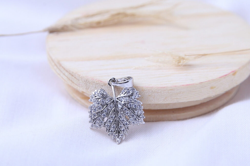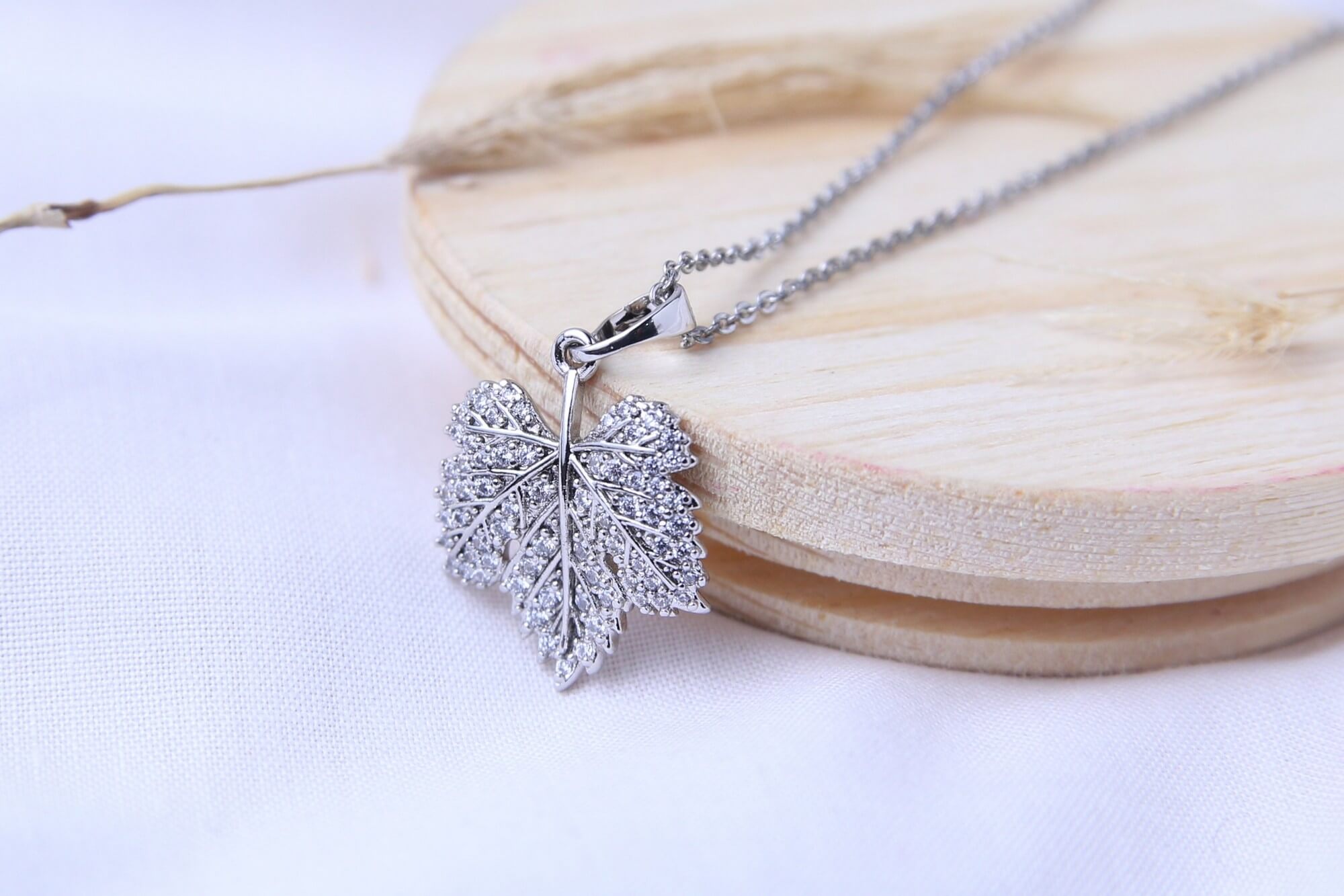 This elegant pendant features a beautifully detailed silver maple leaf, perfect for adding a touch of nature-inspired charm to any outfit. The pendant is crafted from sterling silver and may feature sparkling cubic zirconia stones for added brilliance. The delicate design captures the intricate details of a maple leaf, making it a meaningful and stylish accessory.