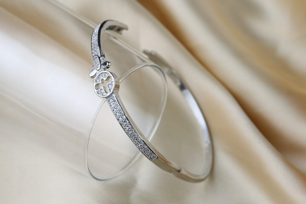 Silver-Tone Bangle Bracelet with Crystal Accents