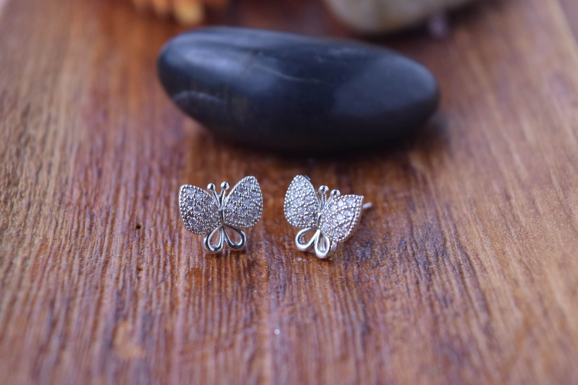 Embrace the beauty of nature with these earrings. These delightful earrings are designed in the shape of elegant butterflies, intricately adorned with shimmering crystals that catch the light and add a touch of sparkle to your look. Crafted from high-quality materials and finished in a luminous silver tone, these earrings exude grace and charm, making them perfect for any occasion whether it’s a casual outing or a special event. Their lightweight design ensures comfort, allowing you to wear them all day with ease. “Bring a sense of whimsy and elegance to your jewelry collection and let your style flutter to new heights!”