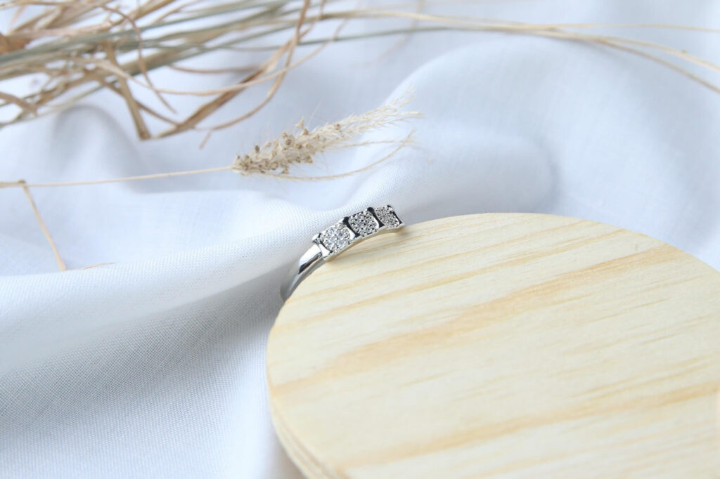 This elegant and timeless ring is a perfect combination of sophistication and charm. Crafted with a sleek silver-tone metal, it features three stunning square-shaped clusters of shimmering zircon stones, adding a dazzling brilliance to the piece. The intricate setting enhances the sparkle, making it a captivating choice for those who love subtle yet refined jewelry. The ring’s polished band seamlessly complements the stone arrangement, creating a balanced and graceful look. Whether worn as an everyday accessory or for a special occasion, this ring is designed to elevate your style with its luxurious yet minimalistic appeal.