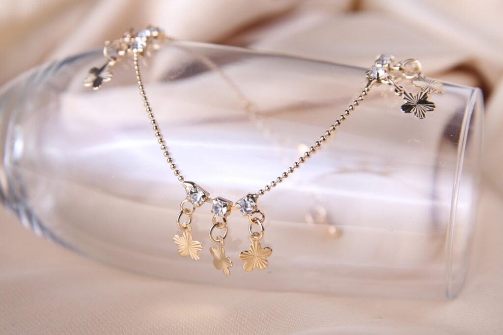 Experience a delicate blend of floral charm and modern sparkle with this radiant gold-toned anklet. This piece features a refined ball-chain design that provides a textured, high-fashion base for its intricate dangles. The centerpiece showcases three brilliant, square-cut clear crystals, each paired with a finely detailed, five-petal gold flower charm that features a beautiful ribbed texture. This combination of diamond-like shimmer and golden botanical elements creates a sophisticated, multi-dimensional look that captures the light brilliantly. Designed with an adjustable extender and a secure clasp, this anklet is the perfect accessory for adding a touch of feminine luxury to your attire or elevating a formal evening look with its timeless floral aesthetic.