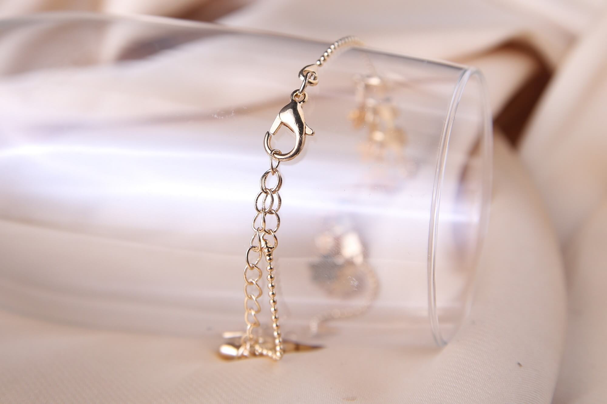 Experience a delicate blend of floral charm and modern sparkle with this radiant gold-toned anklet. This piece features a refined ball-chain design that provides a textured, high-fashion base for its intricate dangles. The centerpiece showcases three brilliant, square-cut clear crystals, each paired with a finely detailed, five-petal gold flower charm that features a beautiful ribbed texture. This combination of diamond-like shimmer and golden botanical elements creates a sophisticated, multi-dimensional look that captures the light brilliantly. Designed with an adjustable extender and a secure clasp, this anklet is the perfect accessory for adding a touch of feminine luxury to your attire or elevating a formal evening look with its timeless floral aesthetic.