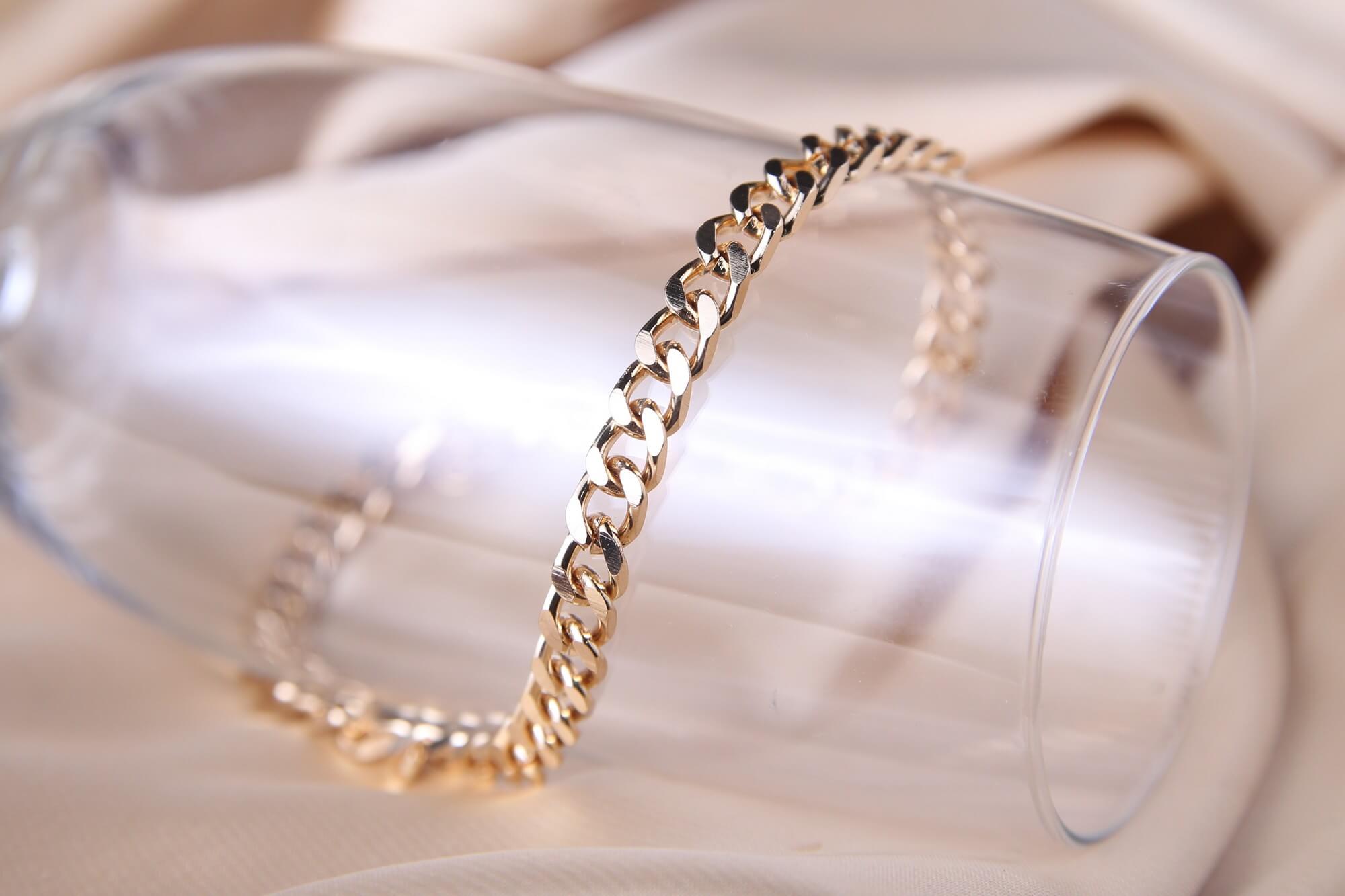 Make a confident statement with this sleek and radiant curb chain anklet. Crafted with high-polish gold-toned links, this piece moves away from delicate charms and focuses on bold, structured elegance. The interlocking flat links catch the light from every angle, creating a liquid-gold effect around your ankle. It’s the perfect blend of streetwear-chic and timeless luxury, designed to be worn alone as a centerpiece or layered with thinner chains for a more textured look. Whether you’re pairing it with classic white sneakers or your favorite summer heels, this anklet adds an instant touch of cool to any outfit.