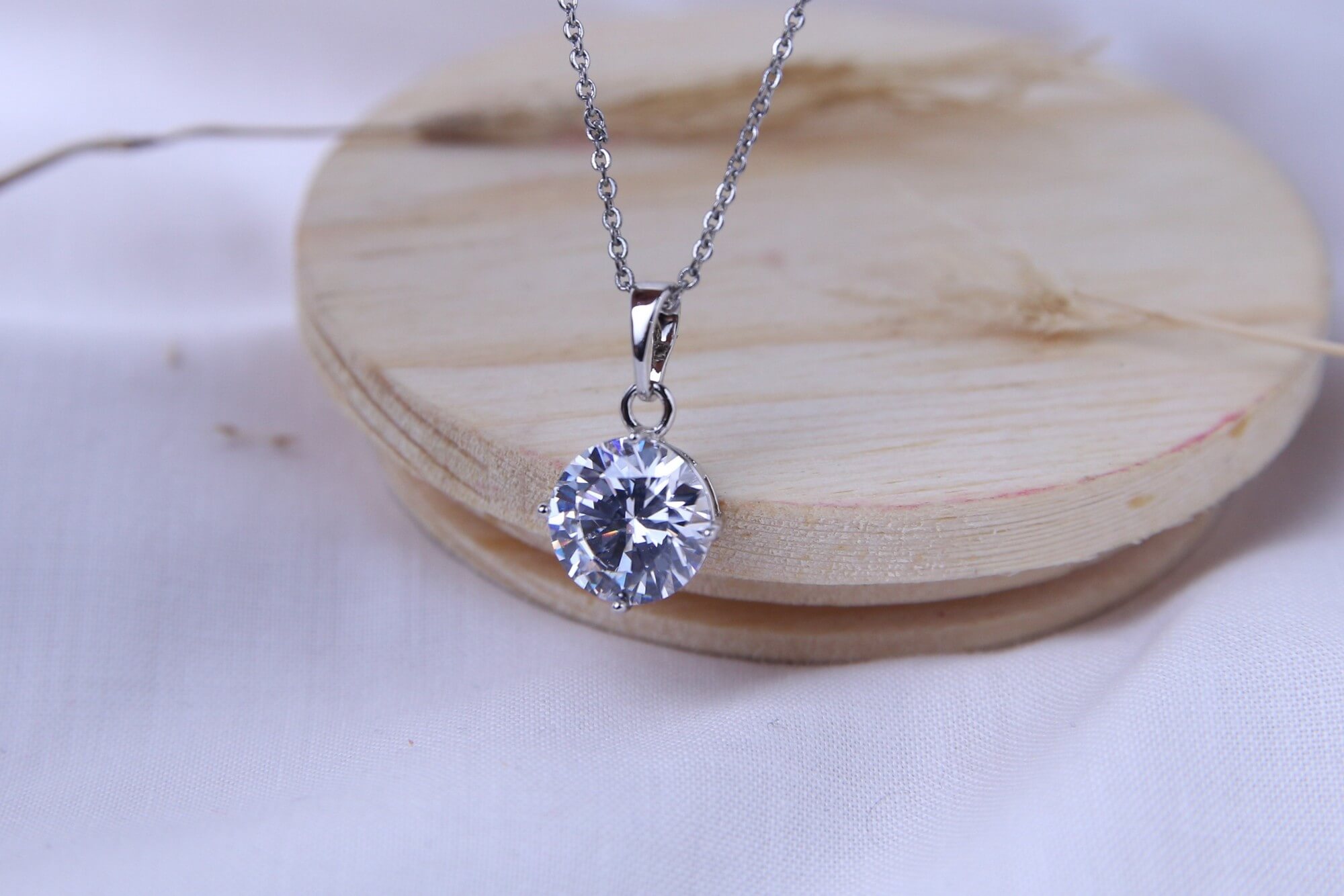 This elegant pendant showcases a brilliant 4.0ct round-cut moissanite diamond, set in a classic halo design. The pendant is crafted from 925 sterling silver, adding a touch of understated luxury. This timeless piece is perfect for adding a touch of sparkle to any occasion.