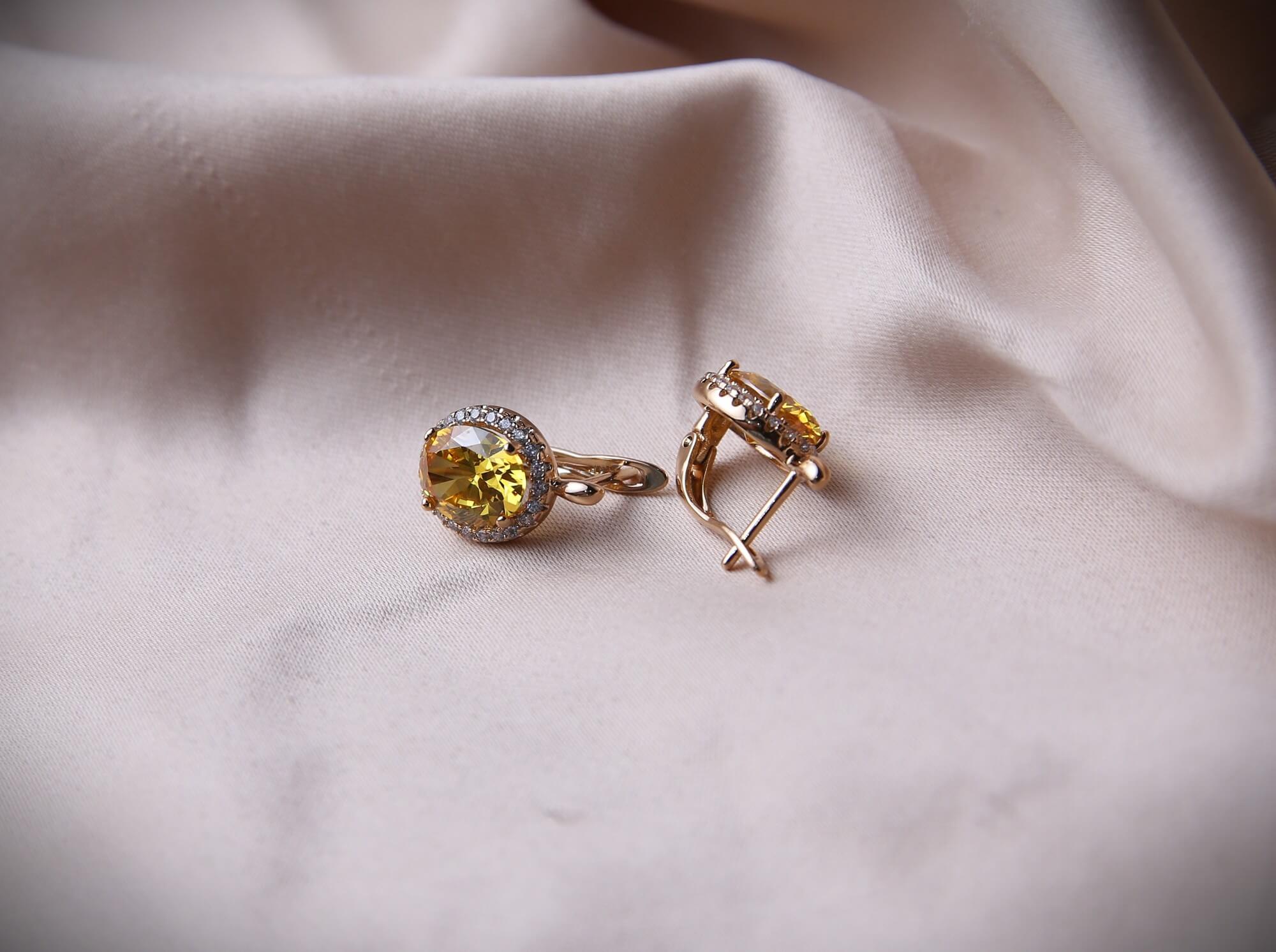 Yellow Citrine Gold Earrings