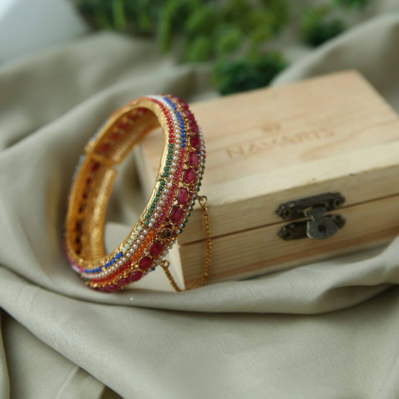 Traditional Gold-Plated Bangle Set with Pink and Green Beads
